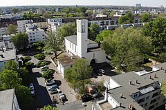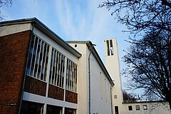 Die nach dem Reformator Philipp Melanchthon benannte Kirche liegt in Köln-Zollstock, mitten im Veedel. Die Kirche ist eingebettet in ein Straßennetz mit weiß verputzten Genossenschaftswohnungen im Bauhausstil. In wenigen Tagen feiert die Gemeinde das 90. Jubiläum der Einweihung ihrer Melanchthonkirche. Sie wurde 1929-1930 nach den Plänen des deutsch-amerikanischen Architekten Theodor Merill erbaut — ebenfalls im Bauhausstil. Die weiße Kirche mit dem rechteckigen Glockenturm gehört damit zu den ersten Sakralbauten Deutschlands, in denen das Erdgeschoss als Gemeindezentrum dient und der eigentliche Kirchraum im ersten Stock liegt. Im Untergeschoss ist eine Turnhalle, nebenan — mit den Gemeinderäumen eng verbunden — der Kindergarten der Gemeinde. Seit 1982 steht das Gemeindezentrum als Beispiel der Bauhausarchitektur unter Denkmalschutz.